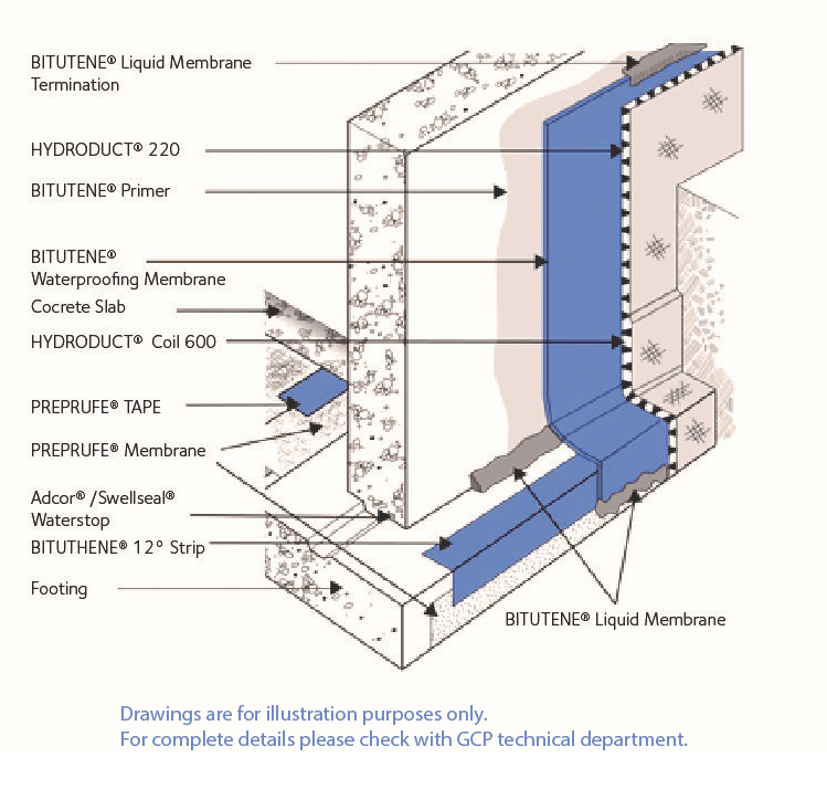 ADCOR, BITUTHENE, HYDRODUCT, PREPRUFE and SWELLSEAL are trademarks, which may be registered in the United States and/or other countries, of GCP Applied Technologies, Inc. This trademark list has been compiled using available published information as of the publication date and may not accurately reflect current trademark ownership or status.